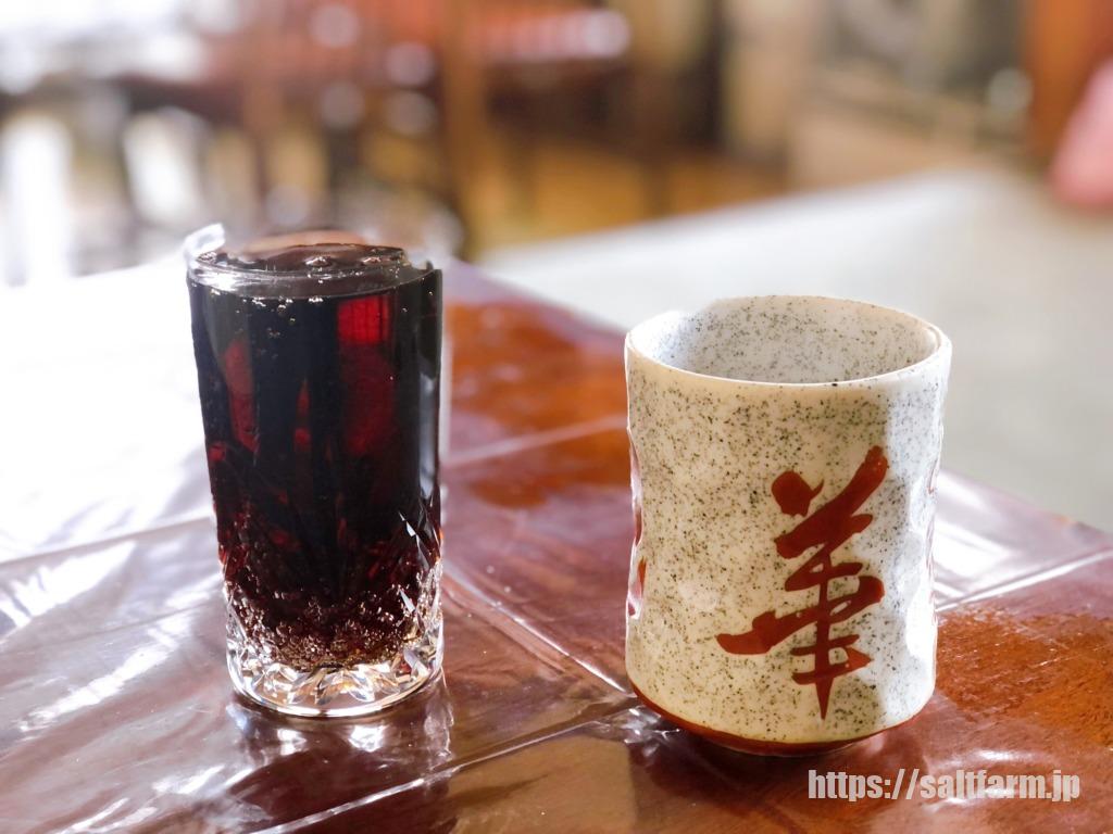 ちなみに右側の湯飲みは、サービスで出してくれる「ほうじ茶」です。