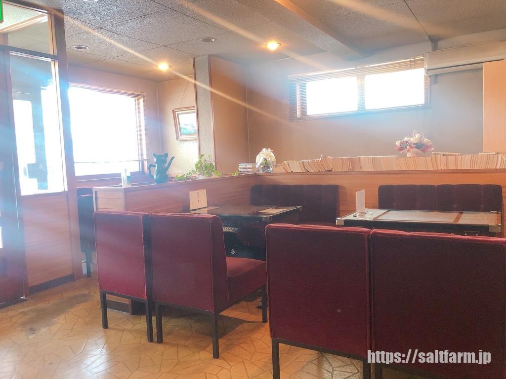 赤いイスもレトロでいいですね~。ザ・喫茶店という感じです。