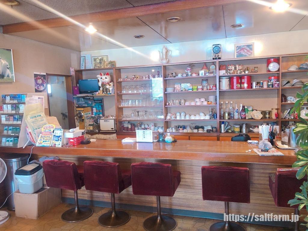 4月の土曜日、10時すぎに再来店。この日は常連さんがひとり、カウンター席に座っていました。