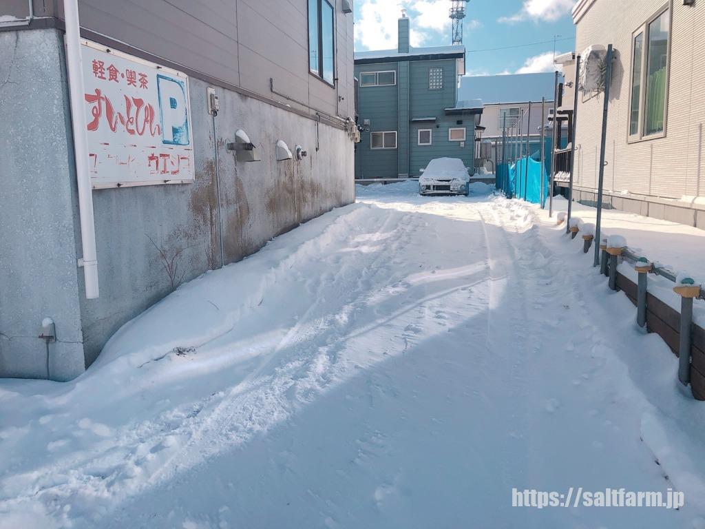 お店の裏に駐車場があります。思ったより広さがあり、5台は余裕で止められそうです。雪が降った日に行ったのですが、しっかりと除雪されていました。