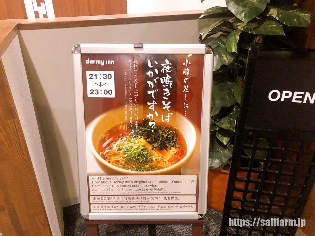 夜鳴きそばは、無料とは思えないくらい美味しいので、ドーミインに宿泊するときの一つの楽しみでもあります。