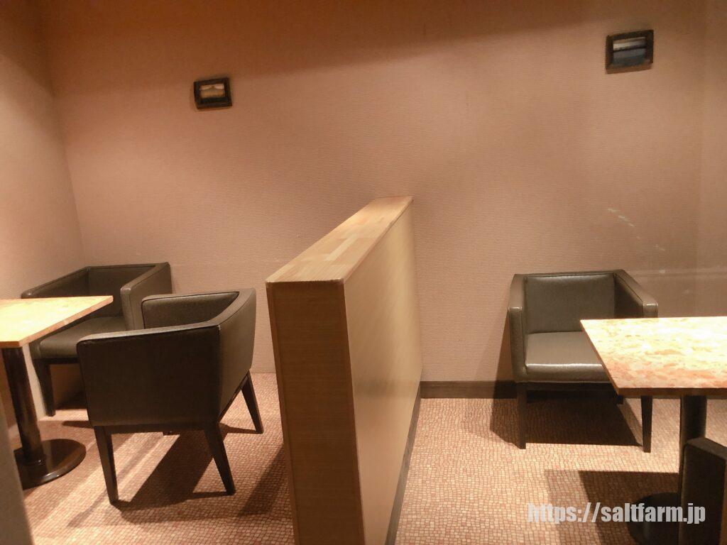 ラウンジはあまり広くはありませんが、仕切りもあるのでそこまで窮屈感はないかと思います。