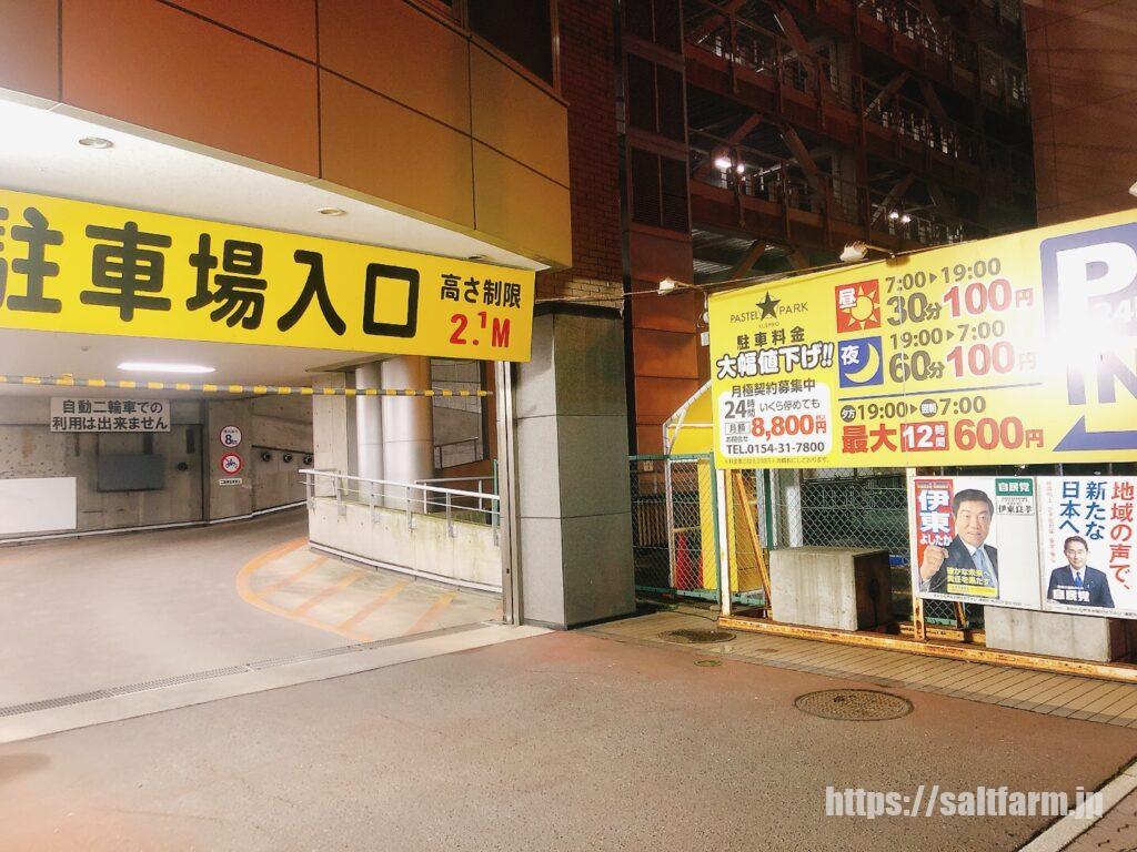 おすすめは、ホテルの斜め向かいにある自走式立体駐車場の「パステルパーク」です。ビルには「ターリーズコーヒー」や「NIKU18」などのテナントも入っています。
