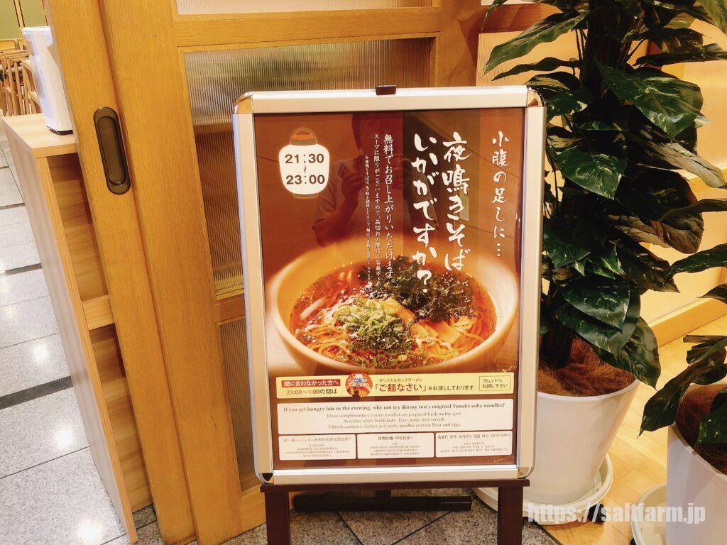 21:30~23:00まで「夜鳴きそば」が無料で提供されています。
