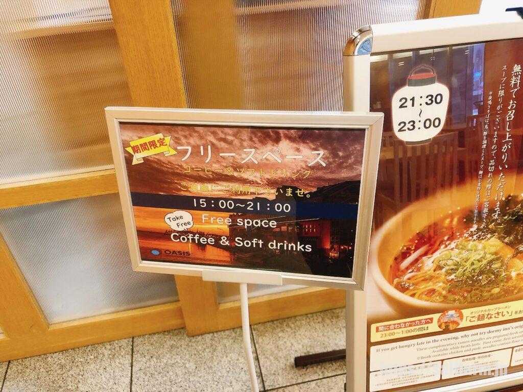 ちなみにここのスペースは、15:00~21:00までコーヒー&ソフトドリンクが飲み放題になります(期間限定)