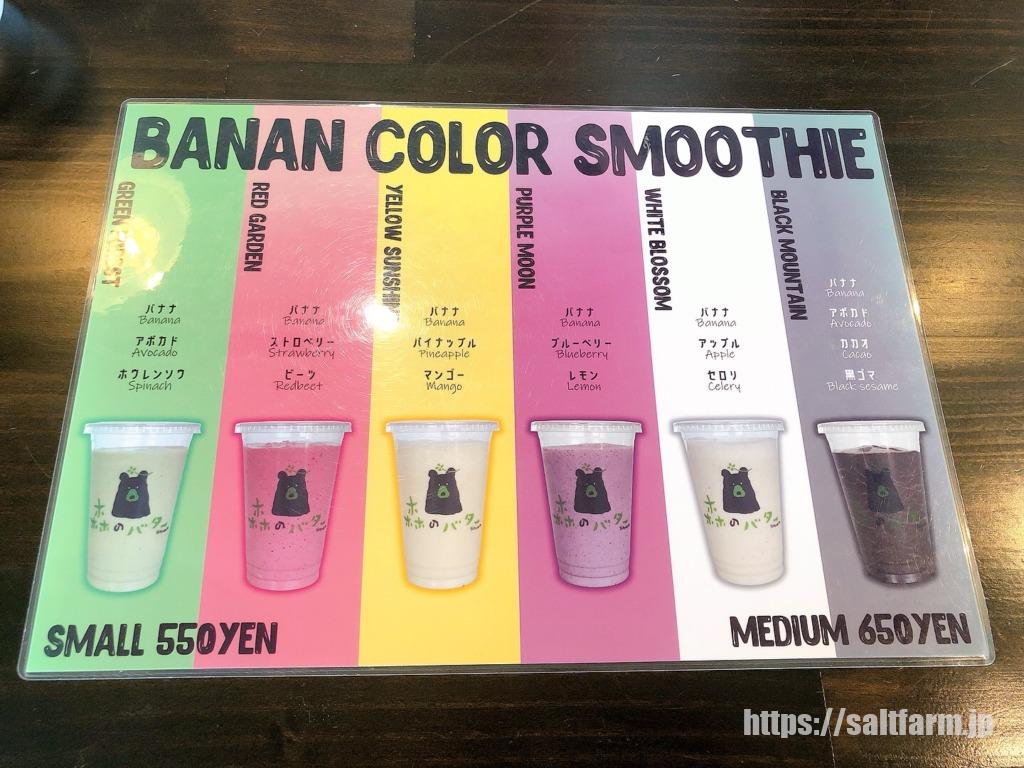 ドリンクのカラー別に全部で6種類のスムージーがあります。