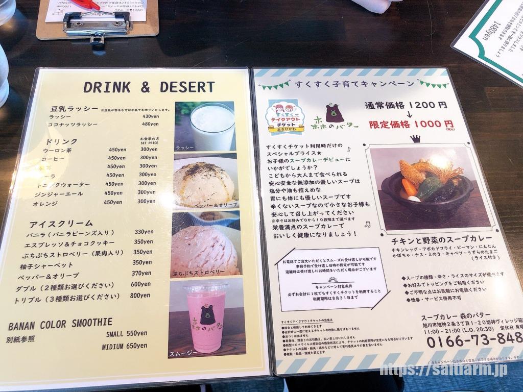 今回はスムージーを目当てだったのでスープカレーは食べていないのですが、メニューだけ紹介しておきますね。
