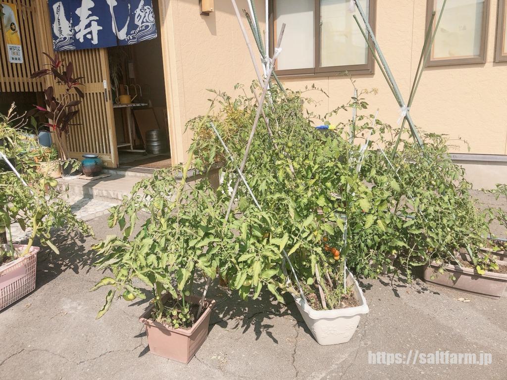 お店の前で野菜を育てていました。ミニトマトや大葉、シソなどがズラッと並んでいます。
