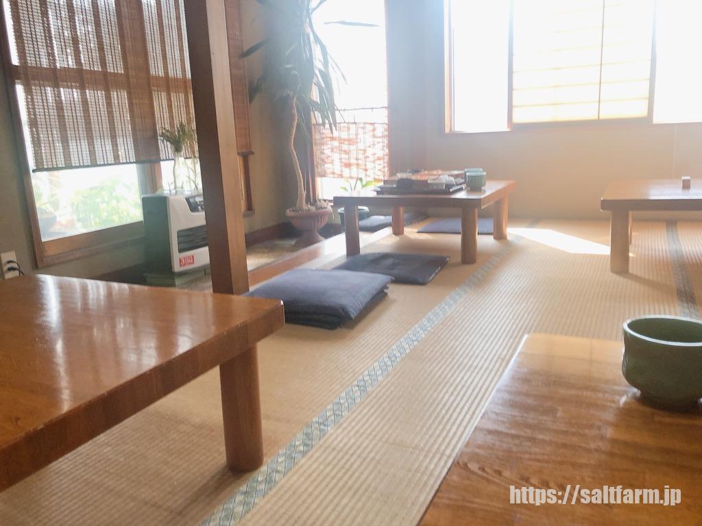 座布団は真ん中に置いてあるので、席に無ければセルフで置きましょう。