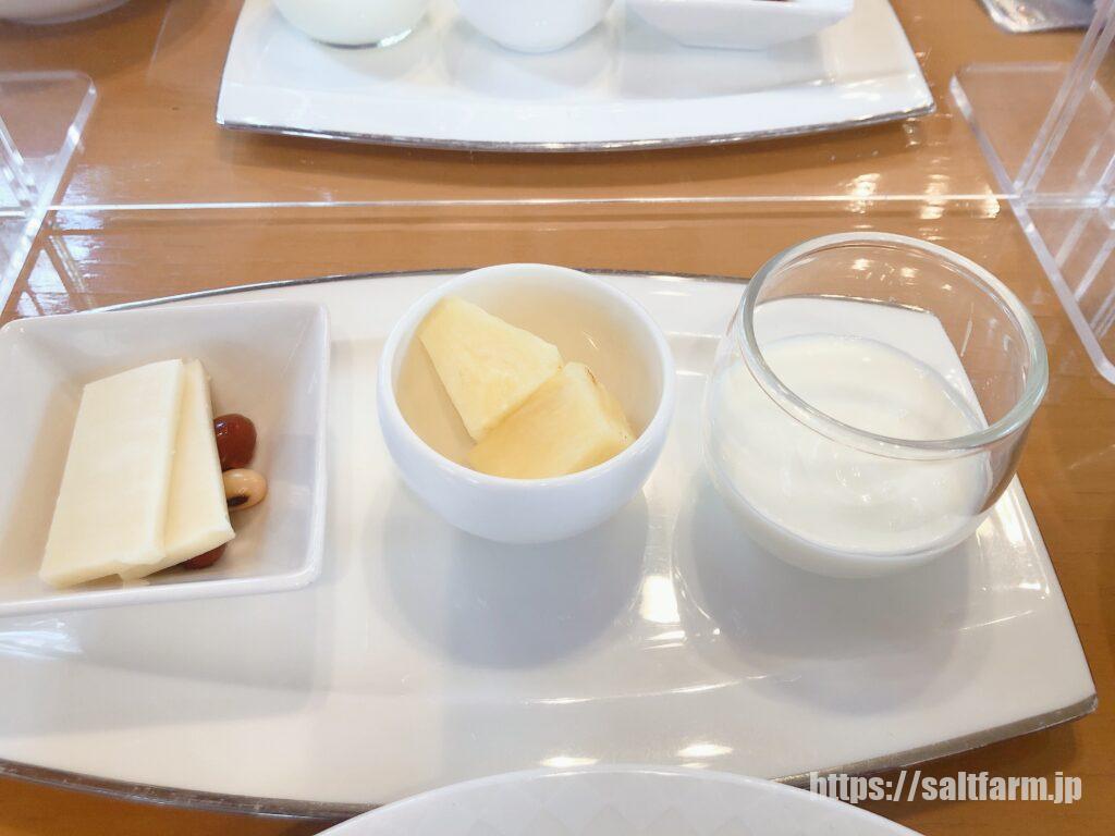 チーズとピクルス、パイナップル、ヨーグルト