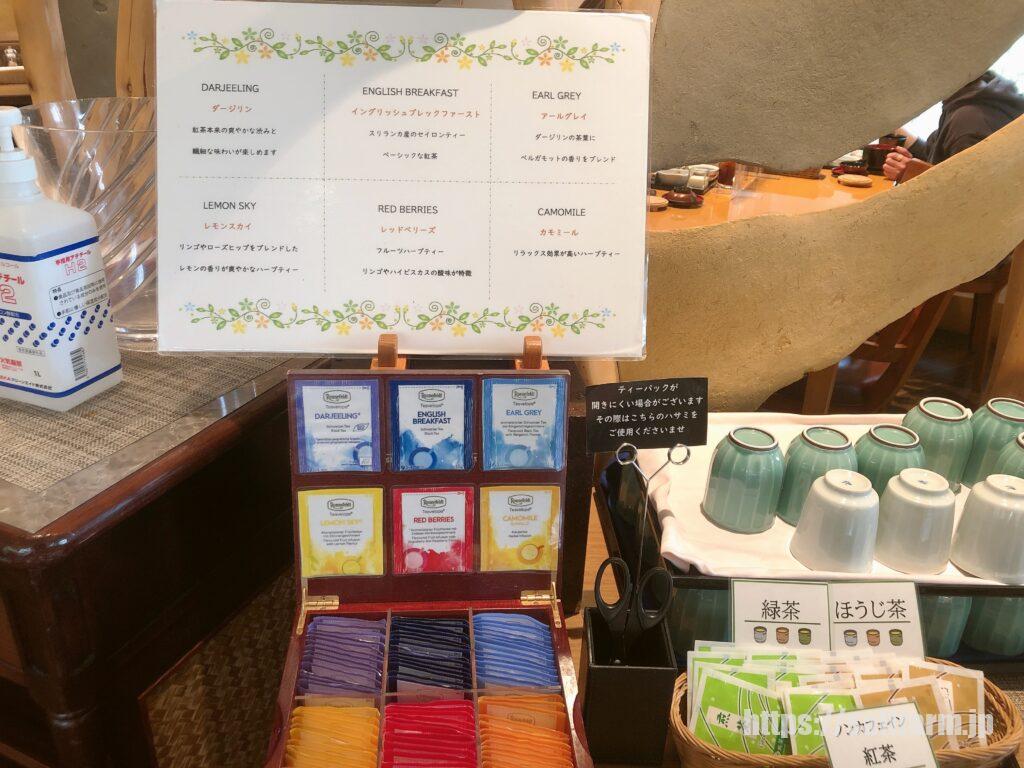 ダージリン、イングリッシュブレックファースト、アールグレイ、レモンスカイ、レッドベリーズ、カモミール