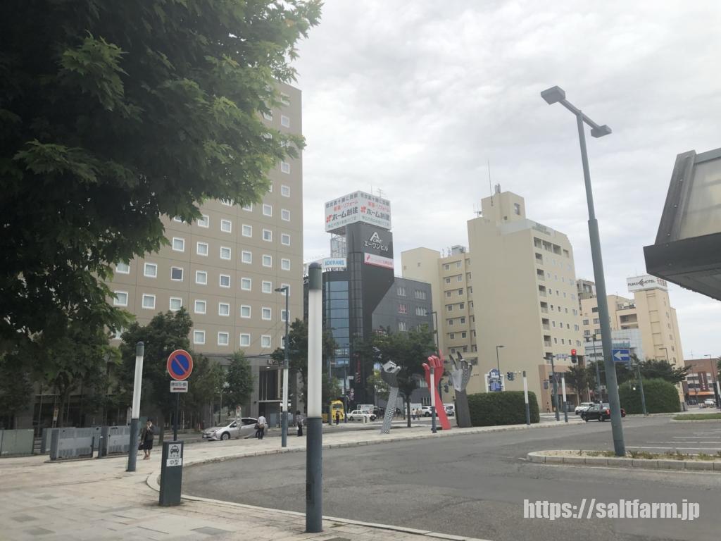 帯広駅の東側のほうに駐車場があって、ホテルは西側でした。