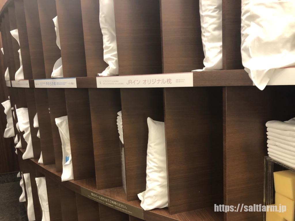 ロビーには色々なまくらが置いてあって、自分の好みの固さや種類を選べます。