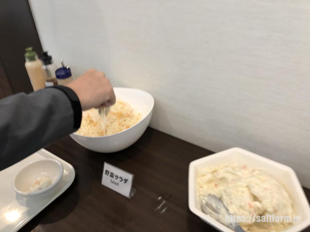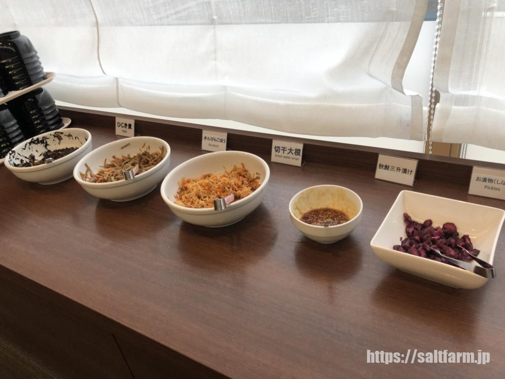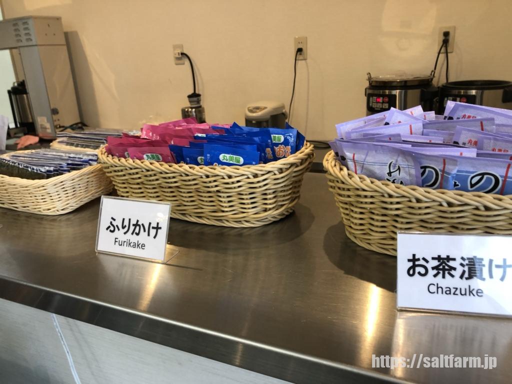 ほかには、お茶漬けやふりかけもあるし、サラダやお惣菜なども用意されているので食べるものには困りません。