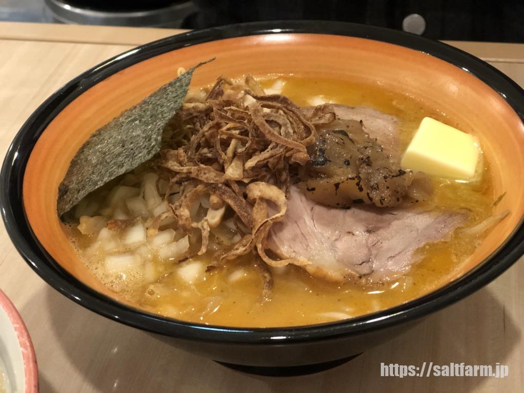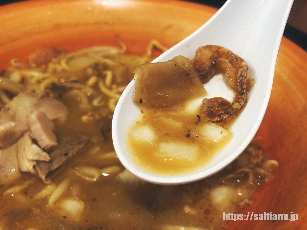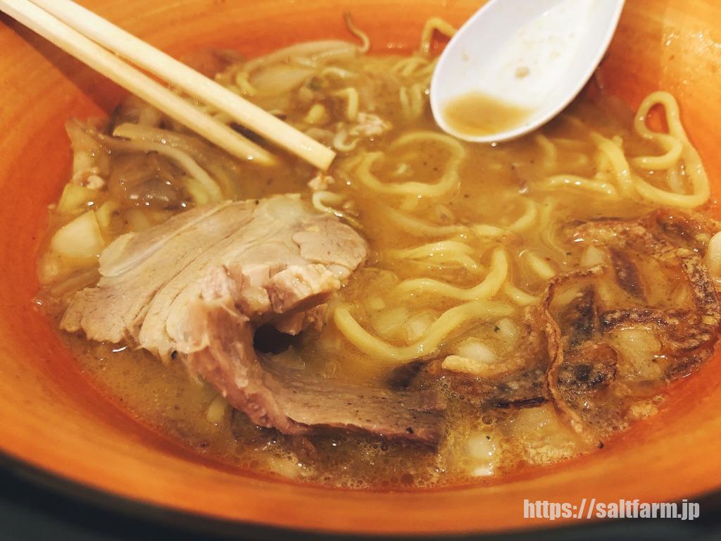名物の玉ねぎラーメンは、なんといっても3種類の異なる食感の玉ねぎ具材になっていること。フライドオニオン、生玉ねぎ、炒めた玉ねぎが入っています。