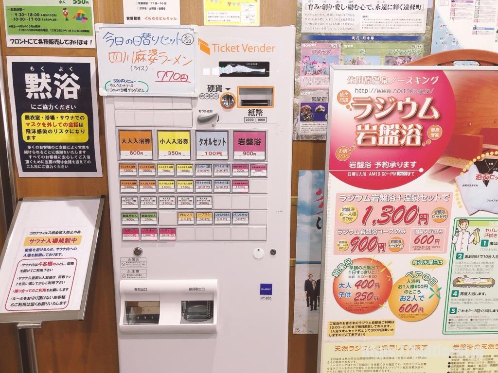 日帰り入浴の場合は、フロントの横に券売機があるので、先にこちらに向かいます。