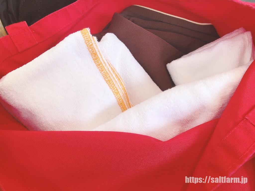 受付で作務衣やタオルなどが入ったバッグを受け取ります。