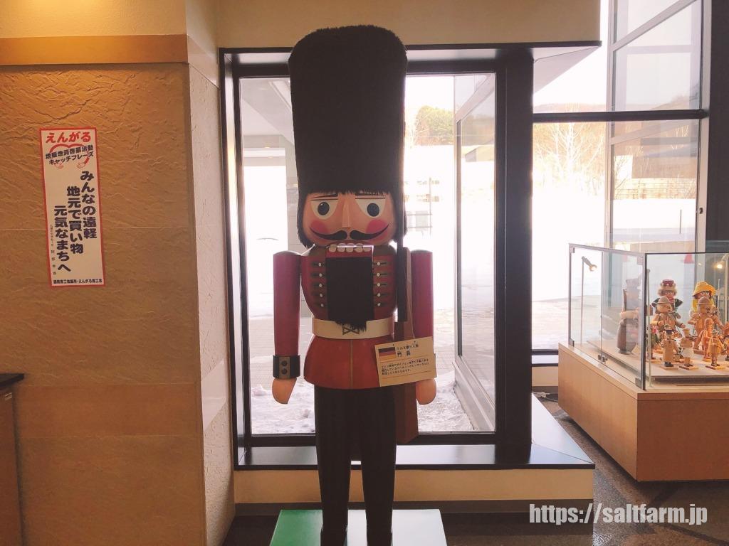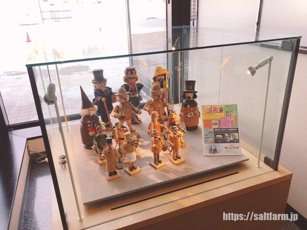 近隣にある「ちゃちゃワールド」の木のおもちゃが飾られています。