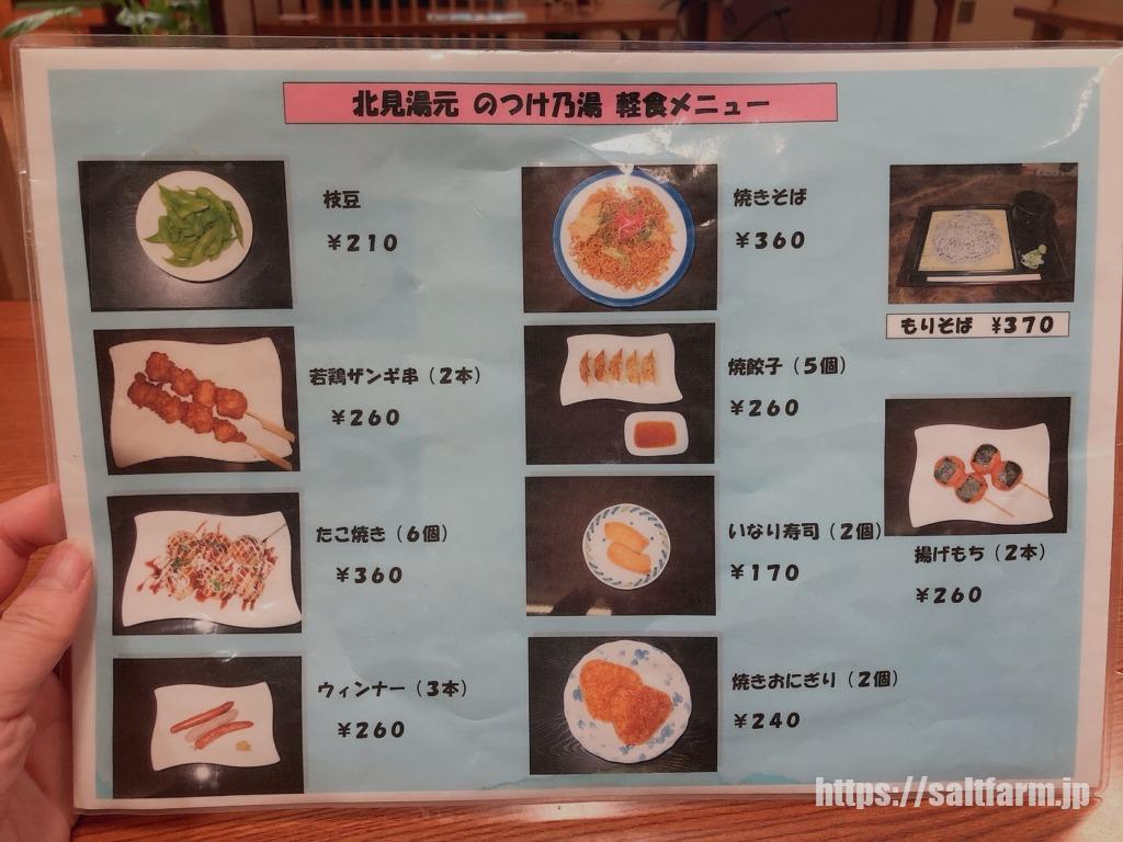 軽食は、小腹が減ったときにちょうどいいメニューがたくさん。