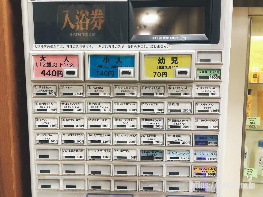 カミソリやタオルなど、必要なものは券売機で購入可能。