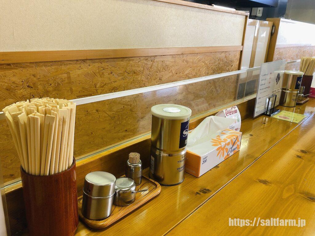カウンター席もテーブル席も仕切り(つい立て)はないので、適度な間隔で座りましょう。