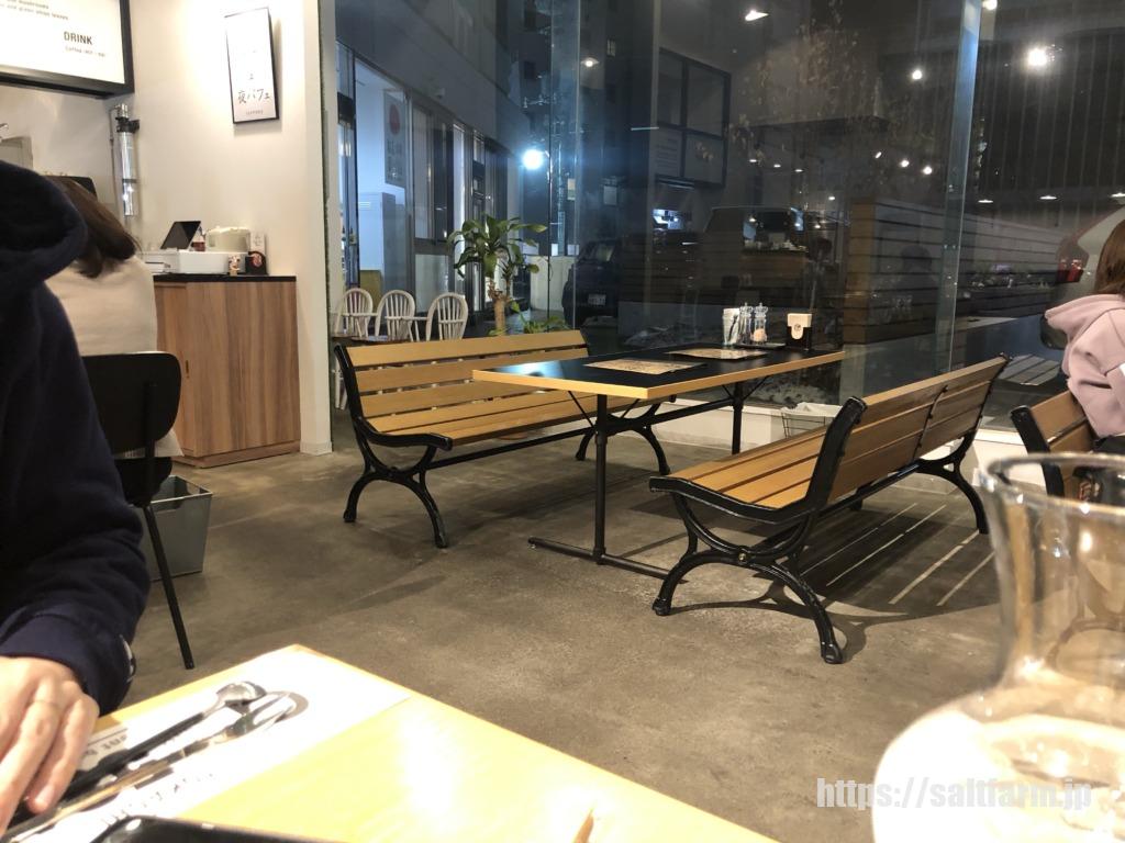 テーブル席、ソファー席、ベンチみたいな席など、いろいろな席があります。