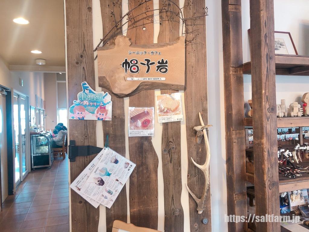 「シーニック・カフェ 帽子岩」は、道の駅並びの「流氷硝子館」内にあります。