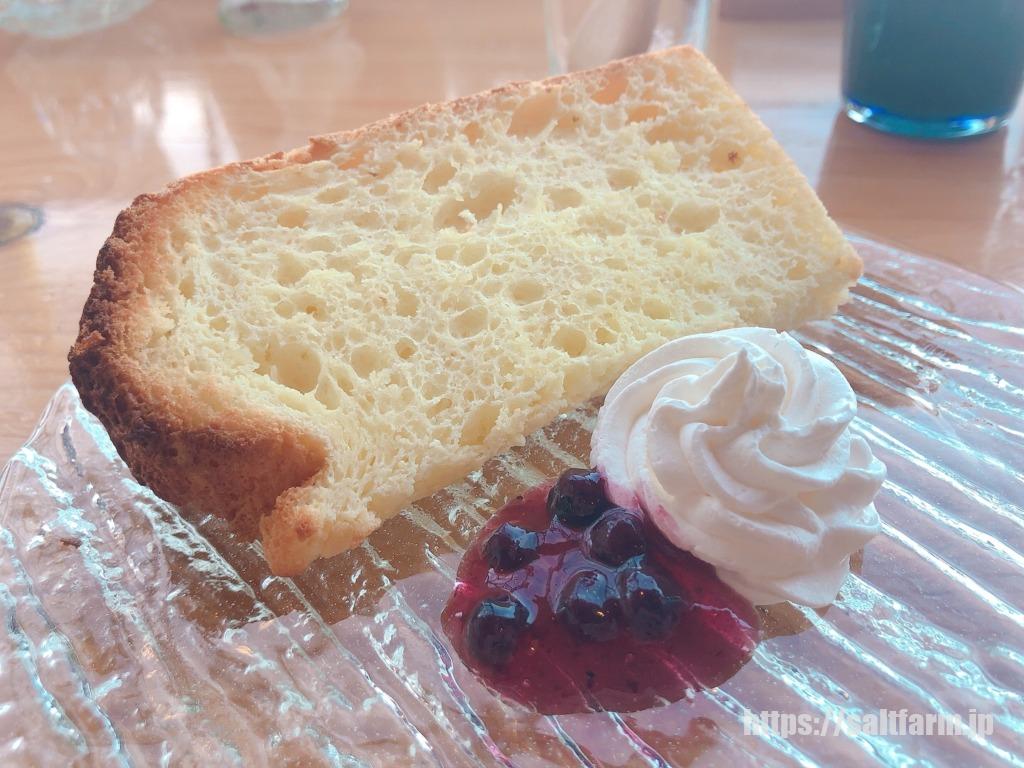 そのまま食べても美味しいのですが、生クリームやブルーベリーソースと一緒に食べることで甘さが加わり、また違った味わいが楽しめます。