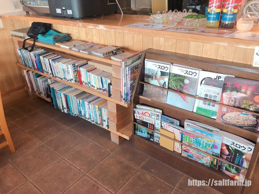本棚には、北海道に関する雑誌やさまざまなジャンルの本も置いてありました。