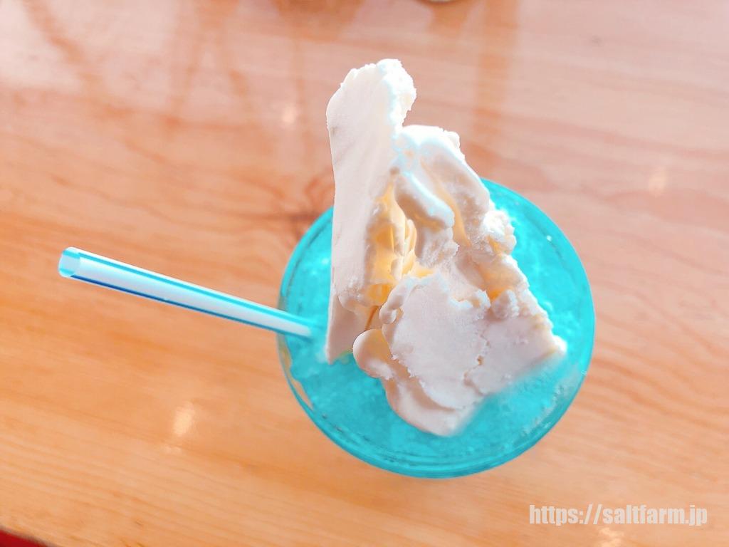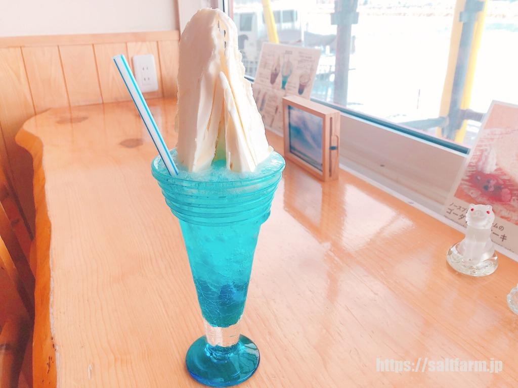 海の色をモチーフとしたソーダに、流氷のようなアイスクリームが乗っています。