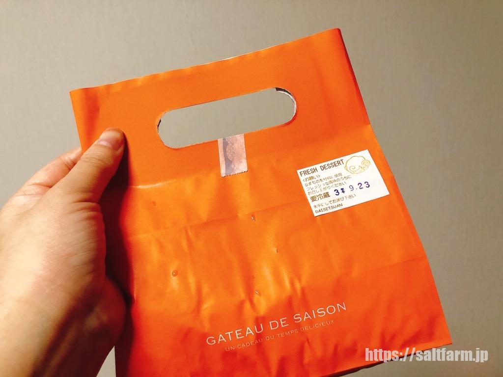 鮮やかなオレンジ色のショップバッグです。「当日中にお召し上がりください」と書かれていました。