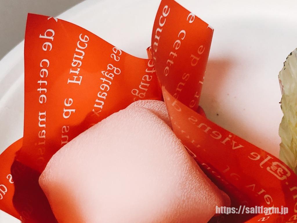 お餅でイチゴとクリームを包んでいます。お餅は薄めなので食べやすいです。