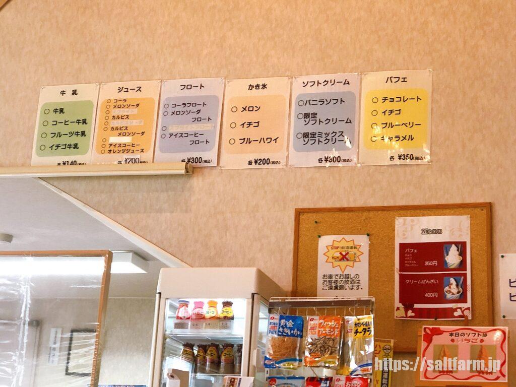 ドリンク以外にソフトクリーム、パフェ、かき氷、珍味も売っていました。